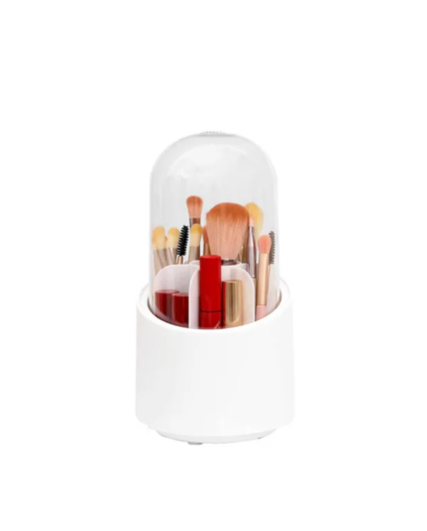 Soporte Para Brochas De Maquillaje Con Tapa Giratorio Acrílico