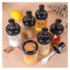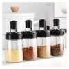 Set 6 Especieros Condimentero Vidrio Giratorio 360 Cuchara Negro