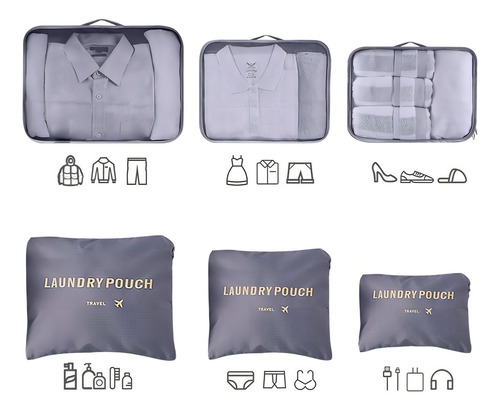 📝 Producto: Set De 6 Bolsa Organizadora De Equipaje De Viaje Gris