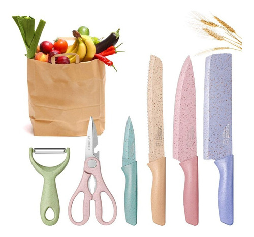 📝 Producto: Set De Cuchillos 6 Piezas Acero Inoxidable Multiusos Multicolor