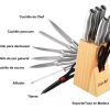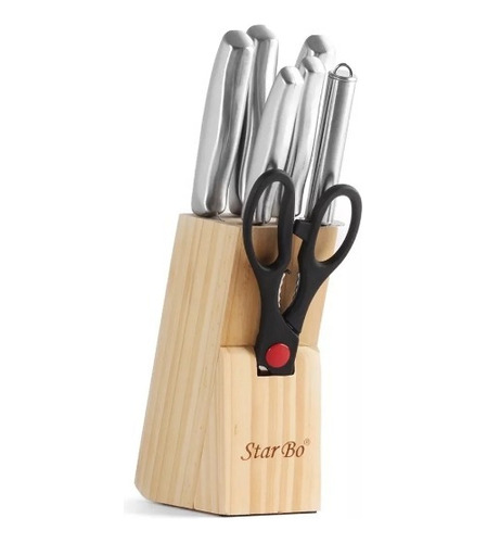 Set De Cuchillos 8 Piezas Juego Acero Inoxidable Base Madera Plateado