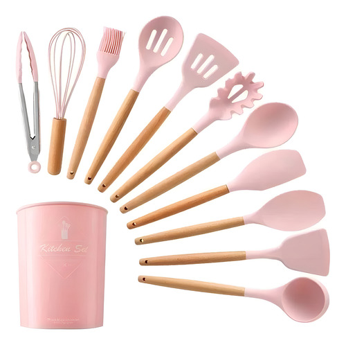 📝 Producto: Set De Utensilios De Cocina 12 Piezas En Silicona Color Rosa