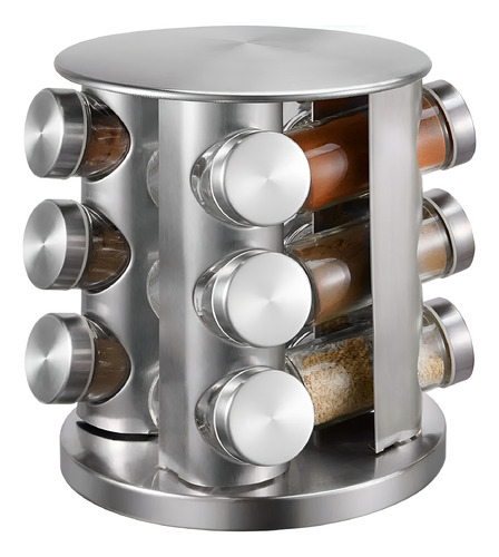 Set Especiero Condimentero En Vidrio X12 Frascos Base Acero Color Plateado