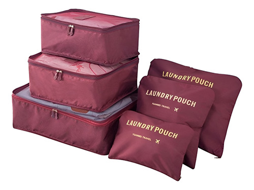 📝 Producto: Set Viaje Bolsos 6 Organizadores Maleta Valija Color Bordó