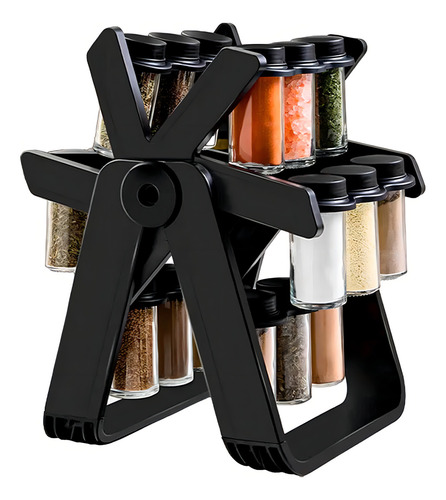 Soporte Giratorio Para Condimentos, 18 Tarros, Modelo Llc-2318, Color Negro