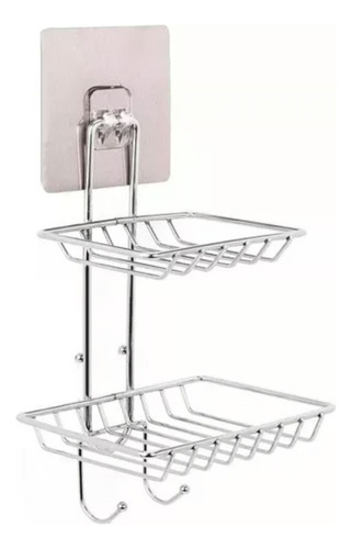 📝 Producto: Soporte Jabón Montaje Pared 2 Niveles Organizador De Ducha Plateado