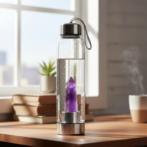 📝 Producto: Termo Botella De Agua Con Cristales De Cuarzo + Estuche Color Transparente