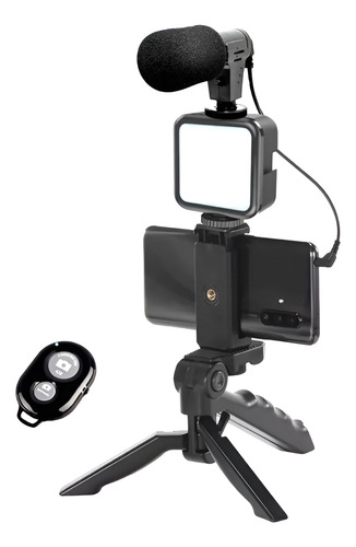 Tripode Con Microfono Para Celular Kit De Grabación Portatil Negro