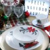 Vajilla Vitrocerámica Navideña Noche Buena 4 Puestos Blanco Liso